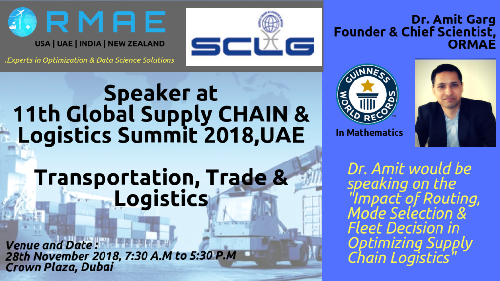 Dr. Amit spoke at the largest Supply Chain and Logistics conference in Dubai, UAE on the most challenging logistics problems faced by global businesses. He described how he has solved the logistics problems in the inbound and outbound supply chain which helped businesses save millions of dollars.